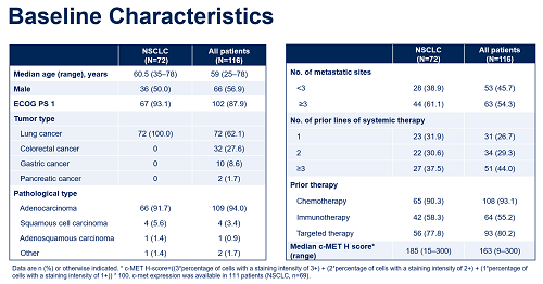 研究共纳入116例受试者,其中NSCLC受试者72例。44%的受试者既往接受过≥3线的系统性抗肿瘤治疗。