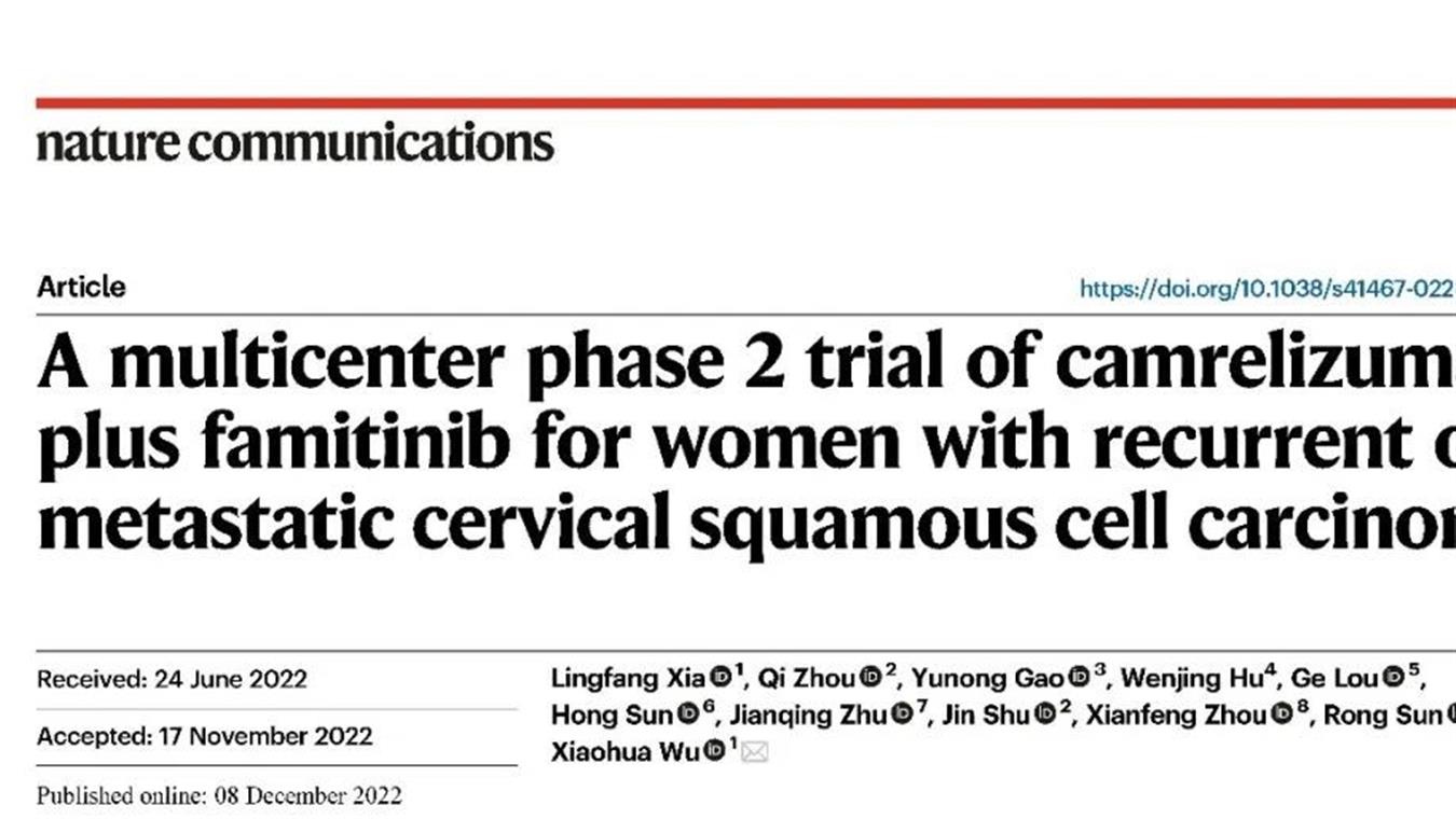 AG官网创新药卡瑞利珠单抗联合法米替尼用于复发或转移性宫颈癌研究结果荣登JCO
